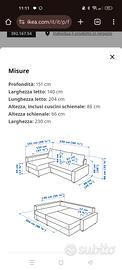 Divano ikea, come nuovo, esattamente come si vede in foto. Diventa letto matrimoniale e possiede chaise longue (montabile sia sul lato destro che sinistro del divano, a seconda delle esigenze)con capiente vano contenitore.