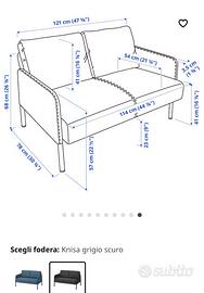 Vendo divano ikea Glostad colore grigio, pari a nuovo, pagato 150 euro. Misure riportate in foto prese dal sito ikea. Non spedisco