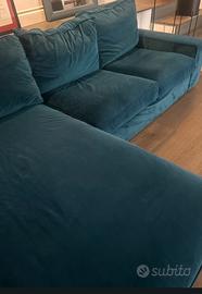 Vendo divano ikea kivik. 3 posti con chaiselounge. Lunghezza 2,80 metri. Ritapezzato con velluto lavabile blu ottanio.