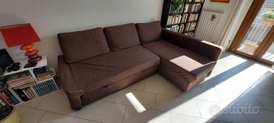 venduto divano letto ikea tre posti con penisola e vano contenitore sotto la penisola. Diventa letto matrimoniale. Colore grigio scuro, venduta assieme alla copertura fatta su misura colore marrone cioccolato, quindi è come se fosse sfoderabile.