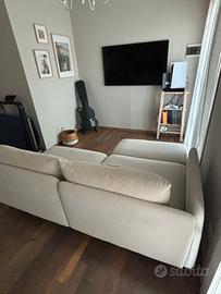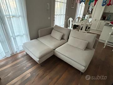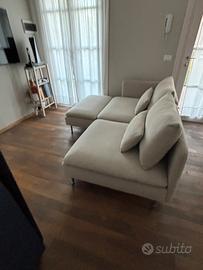 Vendo divano IKEA modello SÖDERHAMN a 2 posti con chaise-longue, completo di 1 bracciolo laterale (acquistato a parte), rivestito in tessuto Fridtuna beige chiaro.
