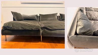 Divano IKEA SÖDERHAMN – versione personalizzata in velluto grigio scuro con cuscini in piuma d’oca