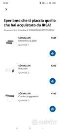 VENDO DIIVANO IKEA SÖRVALLEN PRATICAMENTE COME NUOVO (2022). 2 posti completo di braccioli e poggiatesta. Allego distinta di acquisto IKEA. Solo Ritiro