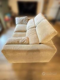 Questo modello è un divano a 2 posti caratterizzato da uno schienale alto e poggiatesta regolabili. Una delle sue funzioni principali è la possibilità di estendere manualmente le sedute per trasformarle in chaise-longue, offrendo così maggiore comfort per il relax.