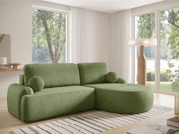 Cerchi un divano robusto e dallo stile originale e contemporaneo? Il divano angolare Imperia è un perfetto connubio tra estetica moderna e soluzione pratica, una scelta eccellente per qualsiasi soggiorno contemporaneo. La sua forma espressiva e il design universale si adattano sia agli interni minimalisti che a quelli più pieni. Il punto di forza del divano angolare Imperia è la sua funzionalità abbinata al comfort. L’utilizzo di molle sinuose e schiuma T30 offre un supporto confortevole e stabile sia da seduti che da sdraiati. In più, grazie al sistema automatico DL , l’apertura del divano angolare è rapida e semplice, rendendolo un’ottima scelta anche per gli spazi più piccoli. Divano angolare a L con funzione letto e contenitore per la biancheria. Divano angolare a 4 posti. I nostri divani, prodotti da aziende competenti e specializzate, sono pezzi unici, realizzati su misura per soddisfare i tuoi gusti più particolari. Questo divano è realizzato con materiali di prima qualità e costruito per resistere nel tempo. La sua struttura solida e i rivestimenti di alta qualità assicurano una resistenza eccezionale. Puoi personalizzarlo con il colore che preferisci e goderti il comfort di un divano su misura. Prodotto esclusivo, creato appositamente per te. Sottolineiamo che il rivestimento della funzione letto che fuoriesce può essere di colore diverso da quello evidenziato in foto e comunque non è in tinta ed è differente dalla combinazione di colore del divano che si sceglie. Misure: lunghezza 264 cm – altezza 89 cm – profondità 172 cm – dimensione letto 210×132 cm Perché il divano Imperia è così speciale? Materiali robusti e di qualità: anima in legno massello e imbottitura in schiuma di poliuretano ad alta resilienza dalla densità di 40 kg/m3. Piedi in metallo. Cinghie di sostegno in ferro per sostenere il peso e le sollecitazioni con maggiore resistenza.
