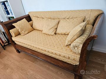 Divano Impero d'epoca, di legno noce, restaurato e tappezzato recentemente 190x85. La spalliera può essere rimossa, in tal caso diventa un letto per un ragazzo