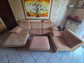 Vendo splendido divano modulare firmato Natuzzi, leader nel settore dell'arredamento di alta gamma. Il divano è rivestito in Alcantara color sabbia/tortora, un materiale pregiato, estremamente resistente, traspirante e piacevole al tatto. Resistente a graffi di gatti. La struttura è completamente componibile: grazie ai suoi moduli (inclusa la spaziosa chaise longue e il pouf coordinato). Caratteristiche principali: Marca: Natuzzi (garanzia di qualità e robustezza). Materiale: Alcantara originale, facile da pulire e duratura. Configurazione: Include modulo chaise longue, moduli centrali, poltrona terminale e un grande pouf rettangolare. Comfort: Poggiatesta regolabili e sedute ampie e profonde per il massimo relax. Stato: Tenuto con cura, come visibile in foto. Struttura e imbottiture ancora perfette. Smontaggio e trasporto a carico dell'acquirente. Disponibile da fine maggio 2026.