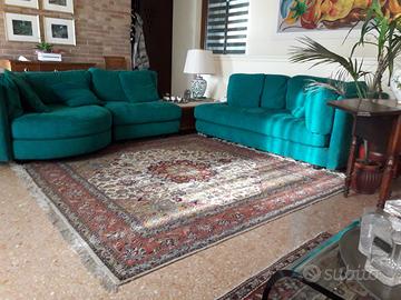 Divani componibili di LIGNE ROSET in Alcantara con penisola , e cuscini ,verde smeraldo (come da foto) praticamente nuovo perché fungeva da secondo divano usato pochissimo