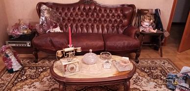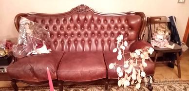 Set elegante in stile Barocco Classico di un Divano 3 posti e due poltrone, in Cuoio pelle, design classico, stato perfett qualità eccellente