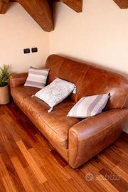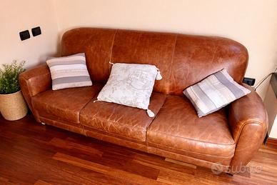 Divano elegante e senza tempo, modello “Oxford” di Maisons du Monde, in cuoio marrone, perfetto per arredare con stile e raffinatezza il tuo soggiorno.