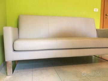 Divano 3 posti, Bruma Salotti, in ecopelle, colore grigio chiaro, piedi in acciaio. 190 cm lunghezza, 75 cm larghezza 90 cm altezza. Visibile a Salerno centro Contattare Mario 328 5461026