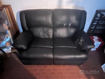 Il divano ha la pelle rovinata, ma con un copridivano si può coprire bene. Alzagambe perfettamente funzionanti.