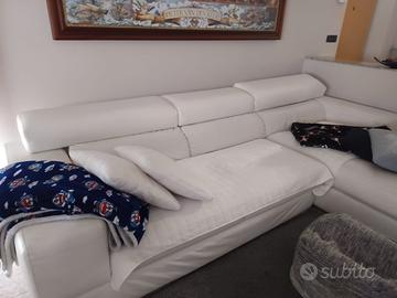 Vendo divano bianco in finta pelle come da foto con graffi su due cuscini Misure 290 x 190