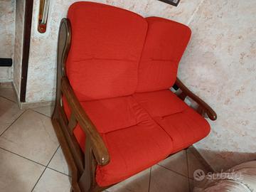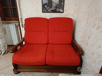 Divano due posti in vero legno massello...come nuovo usato pochissimo vendo per trasloco misure lunghezza 135 cm, profondità 90 cm, altezza 94 cm. Cuscini completamente sfoderabili.