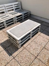 Divano da esterno realizzato con pallet Misure divano 400x270 Misure tavolino 120x60 Cuscini in schiuma realizzati su misura sfoderabili C’è un asse da sistemare, vedi ultima foto Non spedisco visto peso e dimensioni