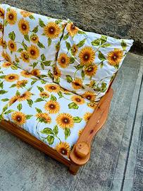 Cuscini imbottiti con fantasia a girasole, sfoderabili e comodi.