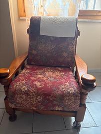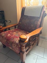 Vendo divano in legno e poltrona con cuscini rifoderati e con annesso tavolino