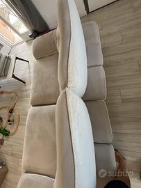 Divano comprato in fiera a Rho 2019 azienda di Como(2100 euro) struttura e imbottitura come nuovi (L220cm P115cm) l’inconveniente è purtroppo la parte in eco pelle che in alcuni punti si sta rovinando ( vedi foto). Potrebbe essere coperto, ma a noi in mezzo la stanza non piace. Si puo dividere in due per il trasporto.