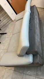 Vendo divano in pelle, artigianale, fatto a mano (Villani Bologna) acquistato nel 2019 ad € 1600. La struttura è ancora perfetta (come si vede dalla foto scattata dal basso), ma il divano presenta alcuni graffi nei due cuscini ripiegabili della parte alta, ed in alcuni altri tratti laterali.