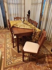 Divano in pelle 3-2-1 posto, tavolo con 6 sedie
