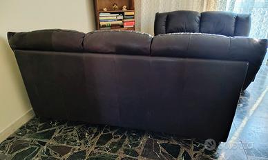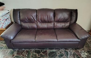 Divano in pelle fiore morbidissima 3 posti colore testa di moro. Misure: lunghezza 200 cm, profondità 86 cm, h seduta 43 cm, h schienale 90 cm.