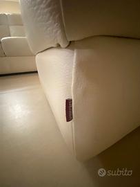 Vendo divano in pelle 3 posti color bianco panna, completo di pouf coordinato.