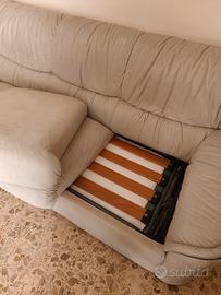 vendo come da annuncio divano in pelle 3 posti, divano letto con rete a doghe compreso di materasso matrimoniale in lana. danneggiamenti come da foto. ritiro a carico dell'acquirente.