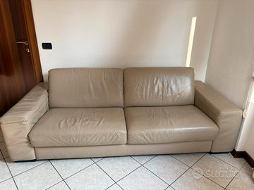 Vendo divano tre posti in ottime condizioni, in pelle 4 fiori insieme con pouf, di Poltrone sofà , causa cambio arredamento,prezzo trattabile.