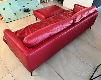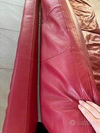 Divano in vera pelle, colore rosso scuro (è leggermente più scuro di come si vede in foto), 4 posti (due sedute/cuscini grandi, da circa 1 metro ciascuna).