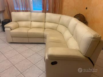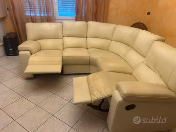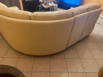 Divano in pelle delle Dondi Saloti , colore beige 6 posti, due relax , 240cm x 240cm Un piccolo difetto un piccolo strappo nel lato posteriore ( vedi foto)