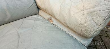 Vendo divano in pelle ad angolo usato. C'è un pezzetto danneggiato ma si potrebbe riparare. misura metri 3 per 2,40 circa. Penisola e cuscini rialzabili. Da trattare con la crema per pulizia. Non spedisco, ritiro a mano. Prezzo trattabile.
