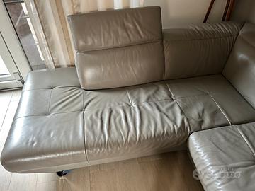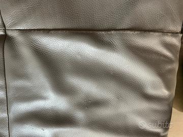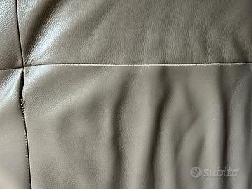 Divano in pelle ad angolo con segni di usura