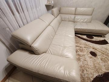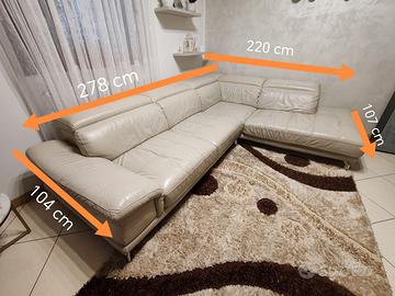 Vendo in buone condizioni divano angolare 278x220cm circa per passaggio a divano-letto, divano in pelle vera, no ecopelle, 5 posti come da foto. È dotato di 5 appoggiatesta reclinabili.