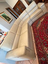 Divano in pelle, ancora in garanzia, con due sedute relax, marca poltronesofà. Ritiro in loco.