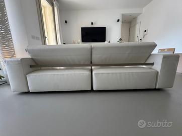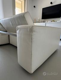 Divano B&B Italia mod. Andy 13 reclinabile / design Paolo Piva anno produzione 2013, in pelle bianca larghezza 245 cm- , profondità 115 cm, profondità massima estensione 145 cm,altezza 79 da terra . Un modello di grande eleganza e comfort, caratterizzato da linee contemporanee e da soluzione tecniche pensate per offrire massima funzionalità . Il divano presenta segni di usura specialmente nelle sedute . Non divisibile . 1500 con trasporto a carico dell acquirente