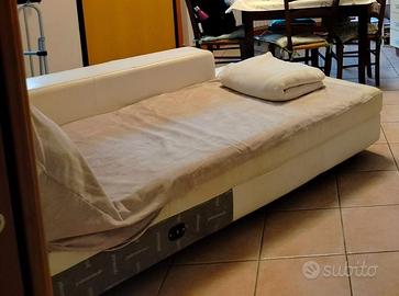 Divano usato, ma in buono stato. Vera pelle, color bianco latte. Due metà componibili. Trasporto a carico dell'acquirente.