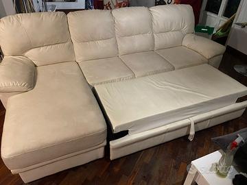 Vendo divano angolare in pelle bianca mondo convenienza (modello Sara) con penisola sulla sinistra e modulo estraibile.
