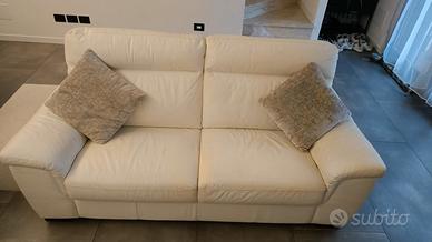 vendo divano come nuovo, in pelle bianca, poltrone sofà, largo 195cm
