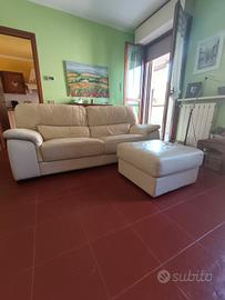 Divano in pelle bianco 3 posti + puff