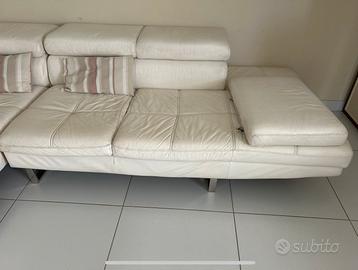 Vendo divano usato in pelle bianca in buone condizioni. Misure: 215x290 profondita 110 altrzza 68/38 cin poggiatesta reclinabili e piedi in acciaio cromato. Ritiro a mano