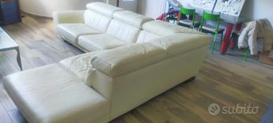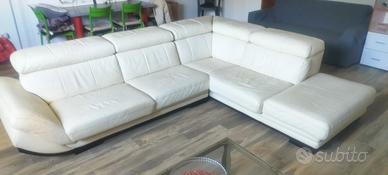 Vendo divano in pelle bianco, dal design elegante e moderno, perfetto per salotto o ufficio. Il divano è molto comodo e spazioso, ideale per momenti di relax. Dotato di poggiatesta reclinabile, permette di regolare la posizione per un comfort ancora maggiore. La pelle è facile da pulire e resistente nel tempo. Usato ma in buone condizioni, con normali segni di utilizzo. Molto comodo e robusto. Ritiro a carico dell'acquirente. Caratteristiche: Materiale: pelle Colore: bianco Misure: 300 X 250 X 100 Stato: buono