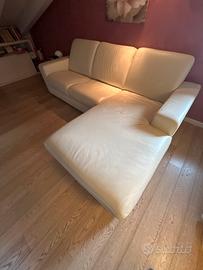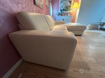 Divano bianco in vera pelle, poco usato.. con una parte angolare relax . Lunghezza: 240 cm, altezza massima schienale 82 cm, seduta profondità 55 cm , profondità seduta relax 130cm
