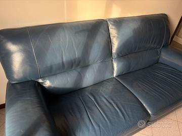 bellissimo divano in pelle blu in perfette condizioni lunghezza 200cm, altezza 93, profondità 90cm