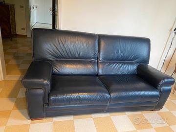 Divano in pelle tre posti,lungo 2 metri e profondo 90 cm,ditta Villani colore blu mai usato ottimissimo stato.