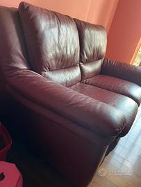 Divano due posti in pelle bordeaux 164x 90 cm , h seduta 45 cm, h schienale 90 cm + puff appoggiapiedi 51 x 51 h 41 cm