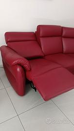 Divano in pelle bordeaux di Divani & Divani - consegnato a Marzo 2025, usato pochissimo per misure errate (277 x 220 cm). Sedile parte sinistra reclinabile, sia da parte del poggiapiedi che poggiatesta.