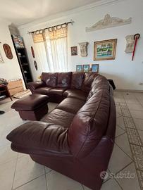 divano angolare in pelle martellata con pouf, in ottime condizioni