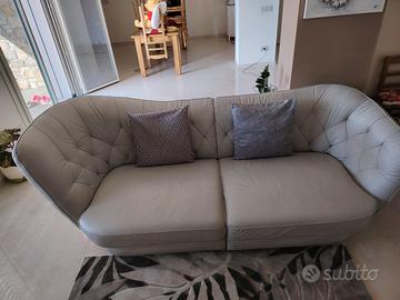 DIVANO IN VERA PELLE COLORE GRIGIO GHIACCIO TENUTO BENISSIMO! NON PRESENTA NESSUN SEGNO DI USURA.