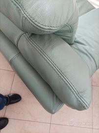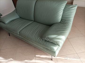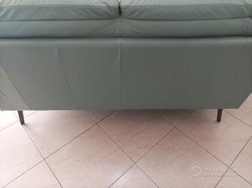 divano in vera pelle comprato da divani e divani Natuzzi colore verde acqua misure 220 x 80 piedi in metallo o in pelle originale