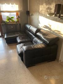 Vendo in buono stato divano By Natuzzi, modello NICOLAUS 2402 in vera pelle bovina Montecarlo 25FH Nero, con piedini in Wenge’, imbottitura in piuma.